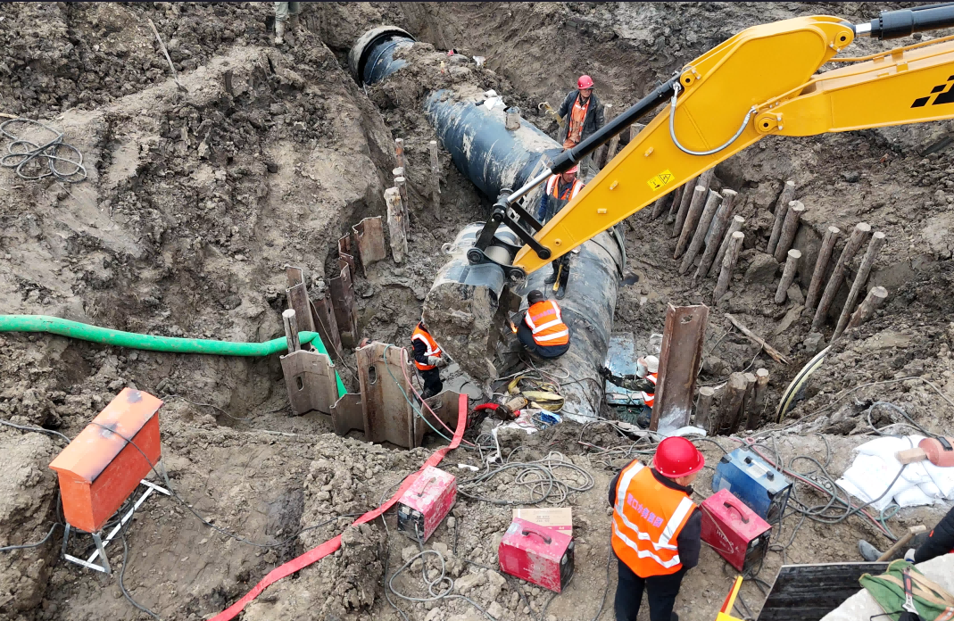 3月26日清晨6點(diǎn),維修作業(yè)準(zhǔn)時(shí)拉開帷幕。此次作業(yè)面臨著不小的挑戰(zhàn),待遷移的DN1400管線口徑大,且由玻璃鋼管與螺紋鋼管兩種不同材質(zhì)管材連接而成,這無疑增加了施工難度。尤其是在轉(zhuǎn)換件連接環(huán)節(jié),對口精確度的要求近乎苛刻,稍有偏差就可能導(dǎo)致膠圈翻折,影響供水安全。面對這一難題,經(jīng)驗(yàn)豐富的作業(yè)人員憑借精湛的技藝和高度的專注,嚴(yán)格把控每一個(gè)施工細(xì)節(jié)。